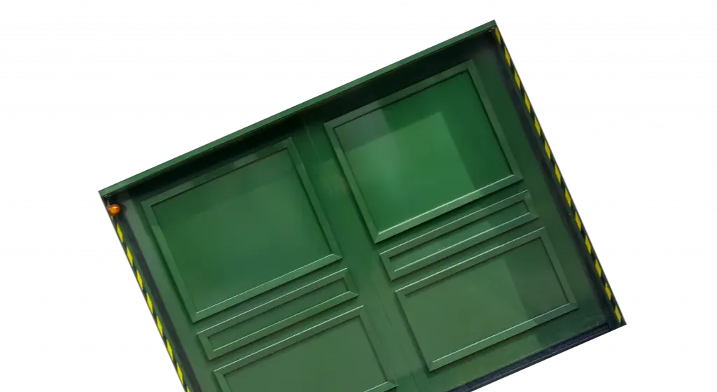 Porte équipé d’un ou deux moteurs 230v hydraulique pour répondre aux demandes de moyenne et grande dimension. Avec son cadre en acier renforcé et un design innovant pour une intégration réussie dans les façades des bâtiments.
