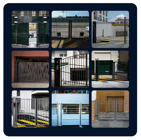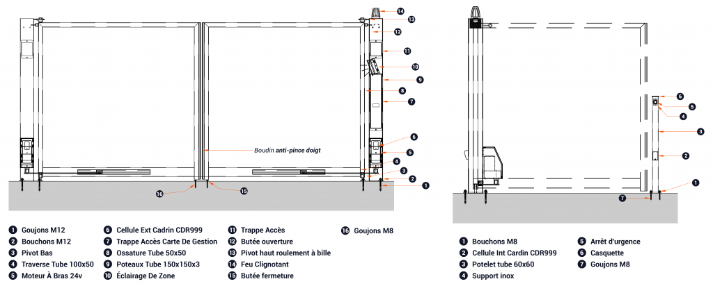 coulissantes), portes de hall, clôtures, portillons,  rambardes,