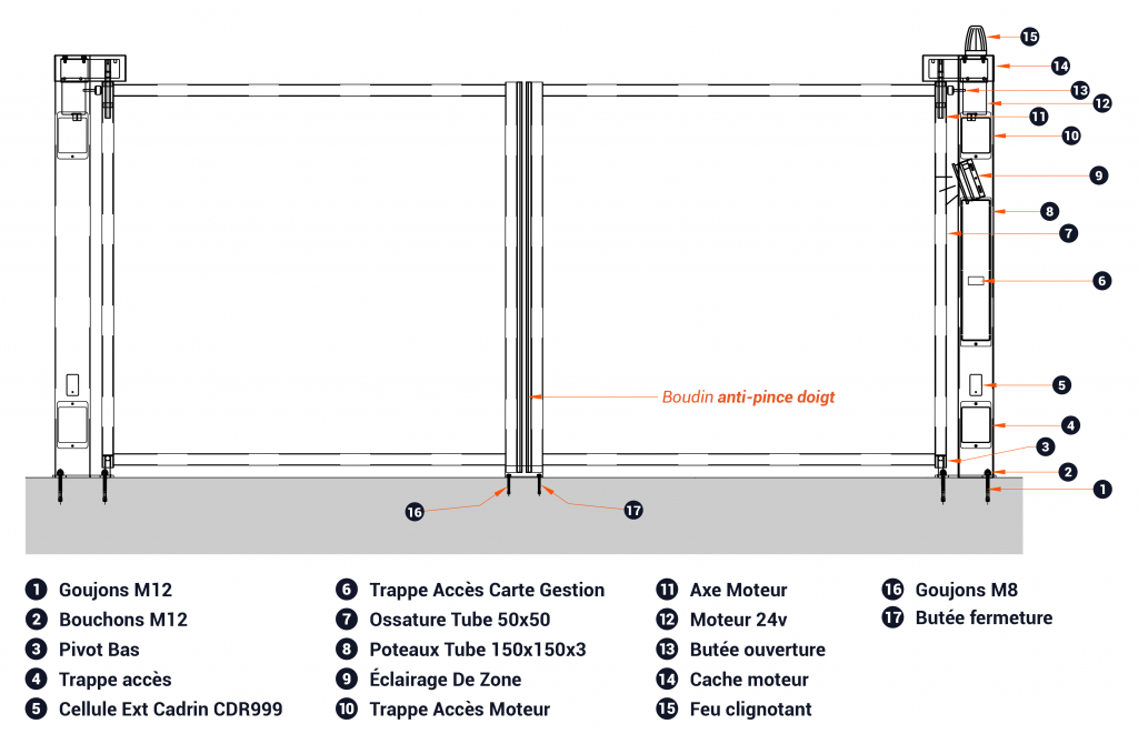 Fréquence d’utilisation : Conçue pour une utilisation intensive avec une motorisation fiable et durable, muni d’une carte de gestion SDMI24V.